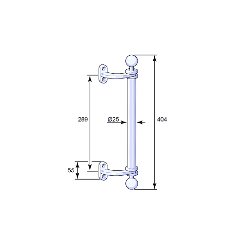 Draghandtag för portar, svängdörrar mm.Förebild: Fehrlins Handels- & Fabriks AB Nr 412  Material: Obehandlad mässing alt. förnicklad mässing  Rek. skruv: TKFS 12 x 2" M/MN