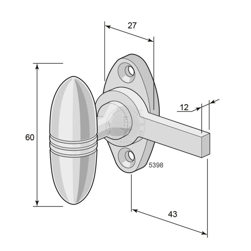 Svensk tillverkning. För inåtgående fönster. Används med hake 5694-12 mm på ofalsade bågar.