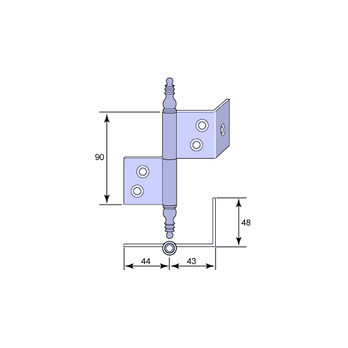 Höjd 90 mm. Svensktillverkat franskt gångjärn av obehandlad stål. Avsett för dörrar med 28-37 mm tjocklek. Spårskruv ingår