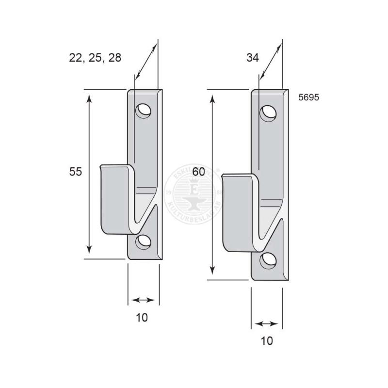 | Övrigt | Används till alla espagnoletter och fönstervred 5050, 5087 och 5167. Kan kompletteras med distansplatta 5696 för att få exakt det djup som eftersträvas. |