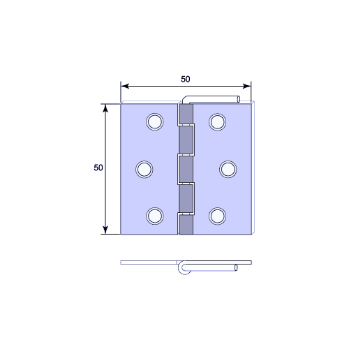 Höjd 50 mm x bredd 50 mm. Skruv ingår. Löstagbar pinne, lämplig till innanfönsterbågar.