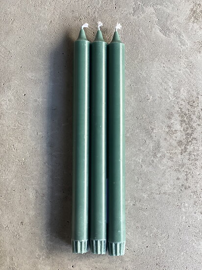 Kronljus i kulören Antikgrön av 100% stearin genomfärgade. Svensk tillverkning. Priset gäller per styck.