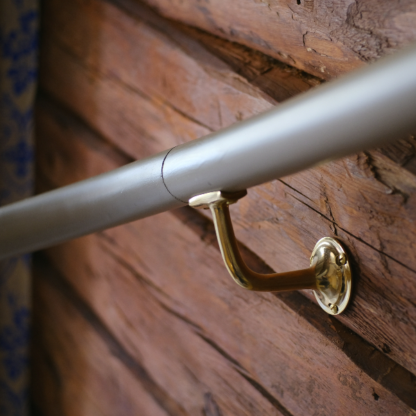 Polerad mässing, två stycken skruvar till att fästa ledstången ingår.