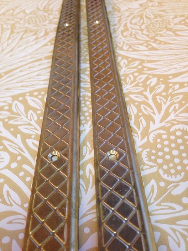 1 meter.List av mässing/ Mässingslist till kantning av trösklar, korkmattor mm. Klassiskt stadigt utförande med präglat diagonalrutigt mönster.Tjocklek 1 mm. Cirka bredd 20 mm.
