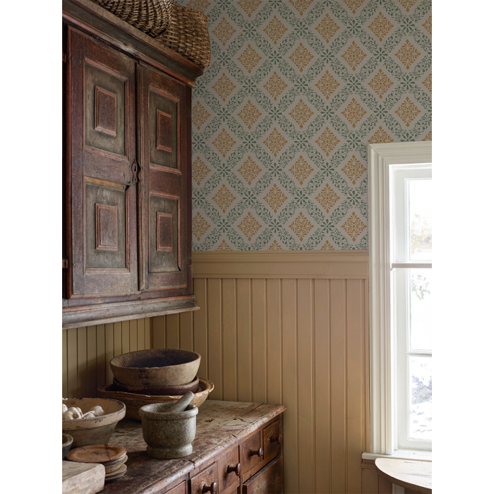 Papperstapet Duro. Dellen är inspirerad av den gamla konstformen schablonmåleri.