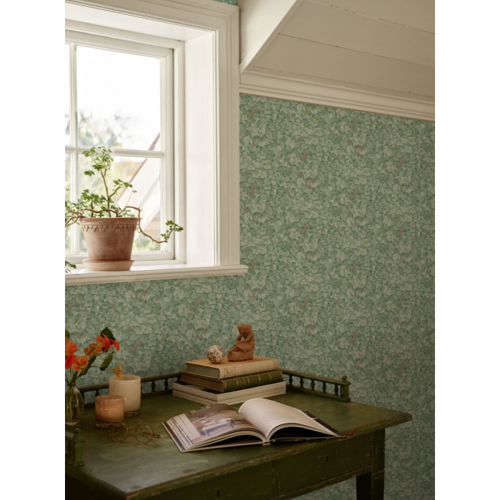 Papperstapet Duro. Lilla Dockekulla skapar en känsla av att vara omsluten av blad och natur.