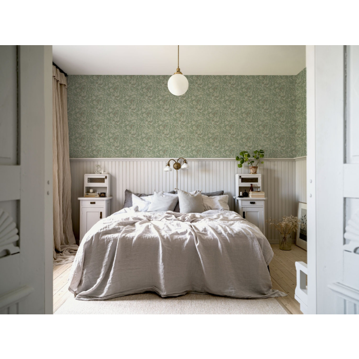 Förlagan till tapeten var en så kallad gobelängtapet, som var vanligt kring 1910–1920. Idén var att tapeten skulle påminna om textil. Förlagan hittades på Beta gård i Åtvid, Östergötland, och dess mönster har tidigare varit en favorit hos oss. Traditionell papperstapet. Vi reserverar oss för viss färgavvikelse mellan produktbildernas färg och tapeterna.